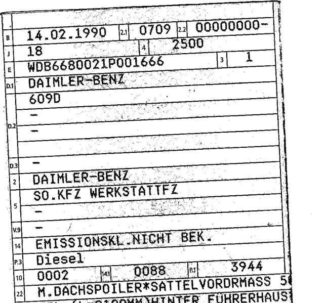 Hallo Magda, ich brauche alles an Infos, was ich kriegen kann :roll: --> mein Schein --> Link am dringensten die Schlüsselnummern, wie hier in meinem alten Schein. Am einfachsten einen kompletten Schein als Kopie mit Foto vom Fahrzeug. Das würde ich dann meinem Versicherungs Mann auf den Tisch legen. Bei ausgenullten Schlüsselnummern liegt alles im Ermessensspielraum der Versicherung. Und das die kein Risiko eingehen wollen ist ja hinlänglich bekannt :cry: Gerne auch als PM oder Mail an deraltehase freenet de moin