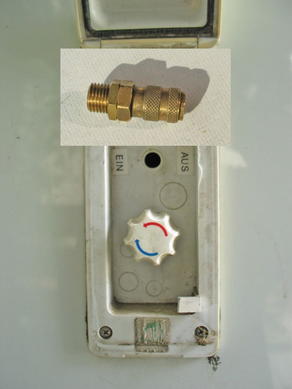 Ich würde aber auch gerne das Wasser aus dem Tank von außen her entnehmen. Die üblichen Wassersteckdosen gehen nicht, da der obere Bereich des Gaskasten, also der an den Innenraum angrenzt dick ausgeschäumte Kunststoffwände sind.