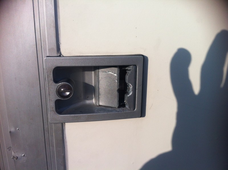 na nan na :D und so sieht es aus wenn irgendwelche Dilettanten versuchen die Tür eines kleinen Imbissanhängers versuchen aufzumachen und dann aufgeben.:ooo: