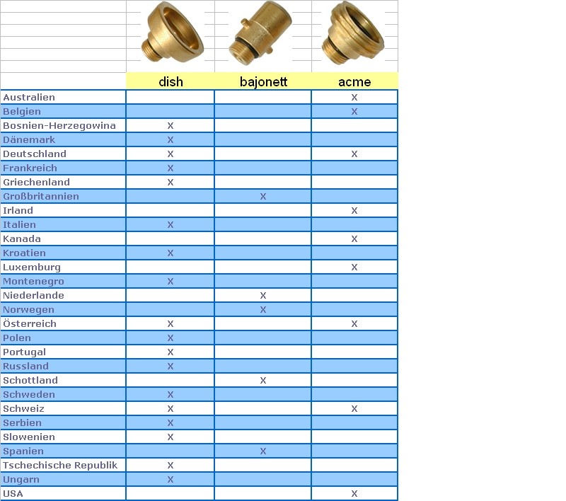 Schade das Du den nozzel schon gekauft hast, die Gasfachfrau bietet ihn für 25€ an. Zu den Tankstellen, ich weiß von Campern die dort Gpl tankten, in Alicante,in Elche, und in Murcia, in Cartagena soll eine Neue sein. MfG. Dieter Hier mal ne Adapterübersicht.