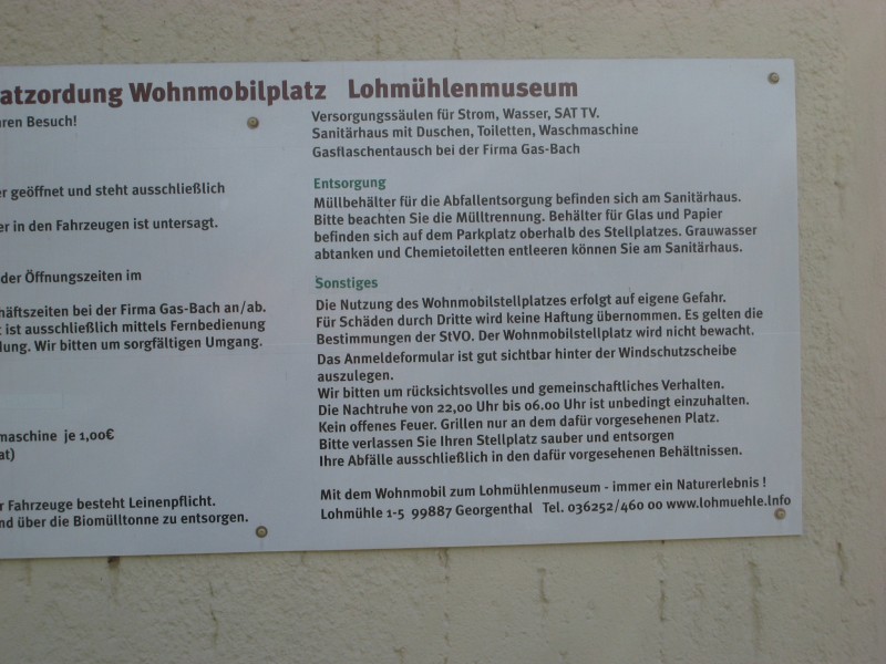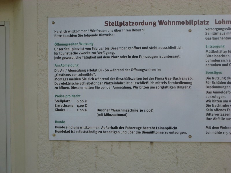 ![]() Hallo, wir waren über Himmelfahrt 2 Tage dort. Vom "Freizeitpark" ist nicht mehr viel übrig. Das Konzept wurde leider schlecht gepflegt. Angelteiche, große Wiese, schöner Bachlauf, Restaurant, Museum, alte Eisenbahn und in der näheren Umgebung viele Wander- und Radwege. Für den Wohnmobilisten stehen Strom, VE, Wasser, Toilette und Dusche zur Verfügung. Warm 1€. Platz genug, um Tisch und Stühle rauszuholen. Im Ort Tambach-Dietharz gibts Netto, Bäcker, Metzger, Tanke usw. Ein ebener, sehr gut ausgebauter Radweg führt bis ins ca 25 KM entfernte Gotha. In der anderen Richtung führt´s den Wanderer oder Mountainbiker nach ein paar Kilometern zum Rennsteig. Fazit: Sehr schöne Location, die angrenzende Straße hört man nachts kaum, tagsüber viele Motorräder. Leider wenige Möglichkeiten zum Einkehren im Ort. Wir, 2 Erwachsene - 2 Kinder - Hund, haben 18 € pro Übernachtung gezahlt. Für 10 - 12 € wäre es eine absolute Empfehlung. So ist der 5 KM entfernte CP "Paulfeld" mit separatem Stellplatz vielleicht die bessere Wahl. Peter N also wir waren auch zum Himmelfahrtswochenende dort und empfinden den Platz schon nicht mehr als SP sondern als CP.Außerdem hat der Vorschreiber vergessen zu erwähnen, dass es auch SAT Anschluß gibt und das alles im Preis inbegriffen. Das er sich über den Preis moniert ist unverständlich :? aber hätte er Kinder und Hund zu Hause gelassen wären es ja nur 14€ gewesen :lol: |