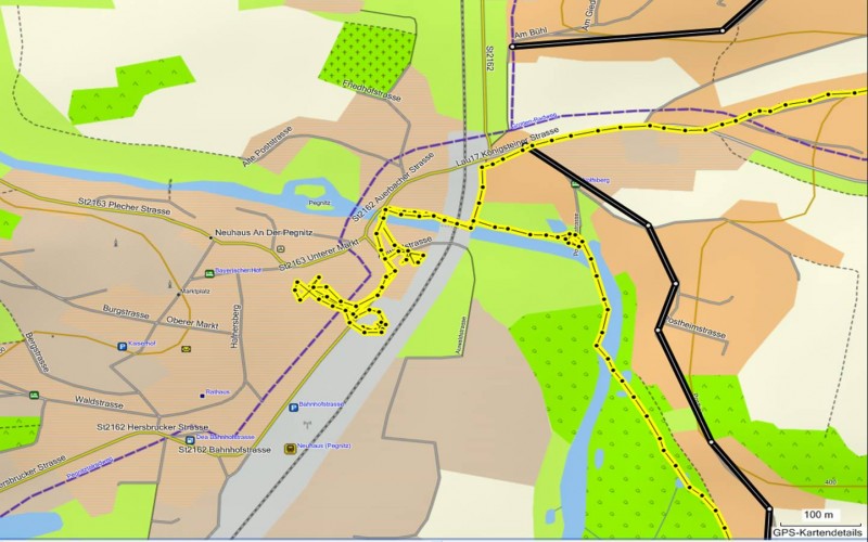 dagegen ist die OSM von Bayern eine Wucht, zeigt im Vergleich zu TopoDeutschland in Erlangen erheblich mehr Details, olffensichtlich hatte hier jemand Zugang zu den städtischen Digitalkarten, da jedes einzelne Gebäude dargestellt wird (Garmin nur bebaute Flächen)