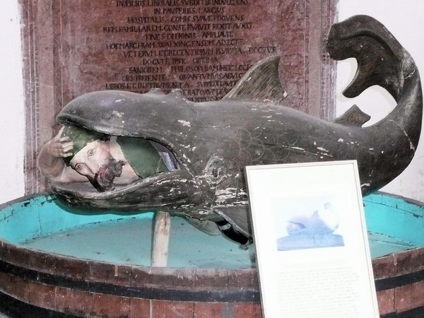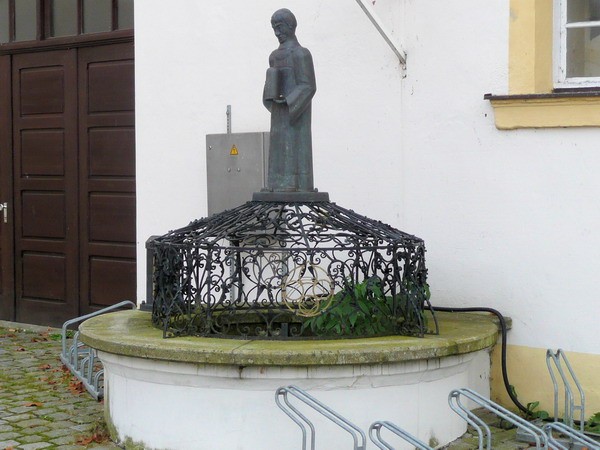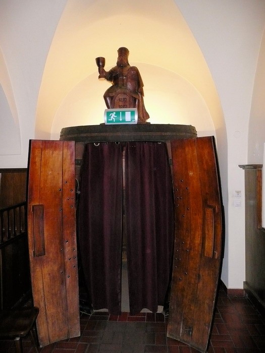Den Größenverhältnissen nach sollte dieser fromme Mann einen 3-Maß-Humpen in der Hand halten