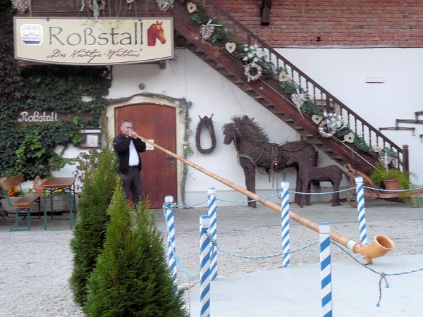 Sogar ein Alphornbläser, der virtuos vor dem "Roßstall" (das ist die CP-Kneipe) einen aufspielte