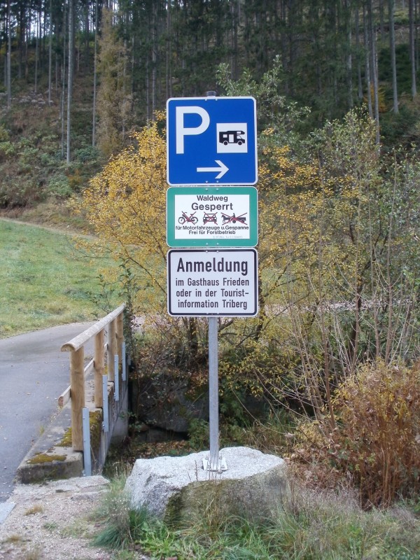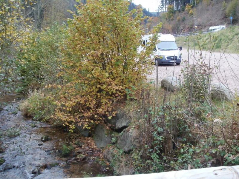 Anmeldung bei der Touristeninformation Triberg oder im Gasthaus Frieden am Stellplatz. Keine V/E gesehen . Grosser geschotterter Platz neben Bach , Wald und Strasse (E 531). Über Kosten hab ich keine Infos. Nur zufällig , beim vorbeifahren , angeschaut . Fotos vom 30.10.2011
