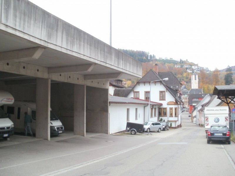 Wohl einmalig ist dieser SP in Triberg : 4 überdachte , kostenfreie SP ohne V/E . Nur Mülltonnen vorhanden .