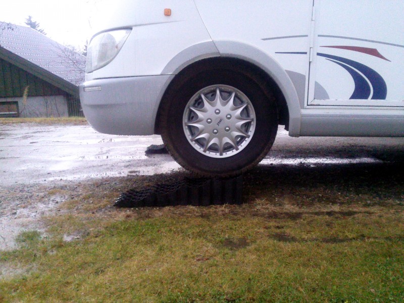 Hast du es schon mal, wenn möglich anders herum versucht. Damit meine ich das Womo anders herum reinzufahren, würde sich ja dann ein Stück weit selbst nivellieren. Grüße Bernhard Da stört uns der Spritzschutz bzw. arbeitet an den Halterungen ![]() Nach vorn ohne Fahrer würde grad noch so gehen :-) ![]() Auf der Hinterachse sind die Keile kein Problem, nur rückwärts bei uns in Grundstück reinfahren, ist vom Verkehr her ein etwas größerer Akt. Man kann ja nicht alles haben im Leben... Bei uns ist es so, dass wir eine Einfahrt zur Garage haben, in die wir aufgrund einer Mauer nur rückwärts reinkommen. Diese Einfahrt ist abschüssig (die Garage ist unten, die Straße ist oben). Ich habe gemessen wo die beiden Achsen vom Wohnmobil in der Einfahrt stehen würden. Dort habe ich einen Höhenunterschied von über 30 cm auszugleichen. Die Hinterachse ist also tiefer als die Vorderachse. Das Auffahren auf (von meinem Nachbarn selbstgebaute) Rampen (für mich) stellt mit dem Wohnmobil kein Problem dar. Das Heck hat beim Rückwärts-fahren die Einfahrt hinunter genug Höhe, um über die Rampen zu kommen, da die Einfahrt ja abschüssig ist. Vorne würde das Wohnmobil auch nirgends aufsetzen. Ich bin gespannt wenn die Rampen fertig sind und werde mit pic berichten... Servus, haben die Dinger auch.Bereits einmal umgetauscht. Die Höhe ist gut aber die Dinger sind alles nur nicht stabil und von guter Qualität, zumindest nicht für den Preis von 60 - 70€. Sie drücken sich ein und werden auf der Auffahrfläche glatt.Ist zumindest bei denen mit drei Ebenen so. Handelt sich um unsere Erfahrungen mit zwei Sätzen in insgesamt 7 Monaten.