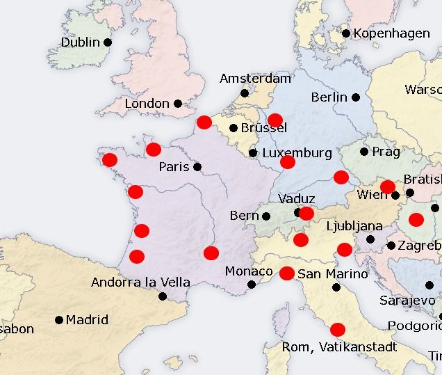 Schon getestet: Normandie, Bretagne, Bordeaux, Toskana, Rom und dutzende weiter innen liegende Städte.