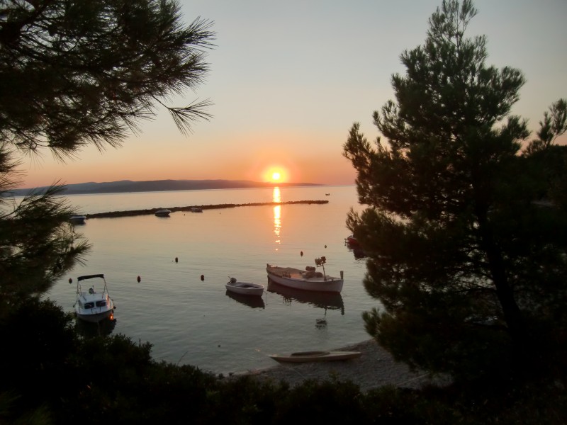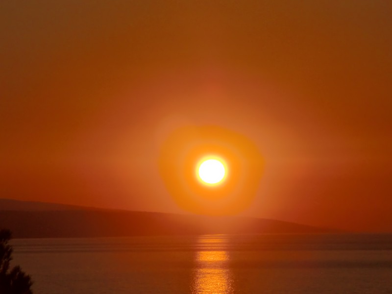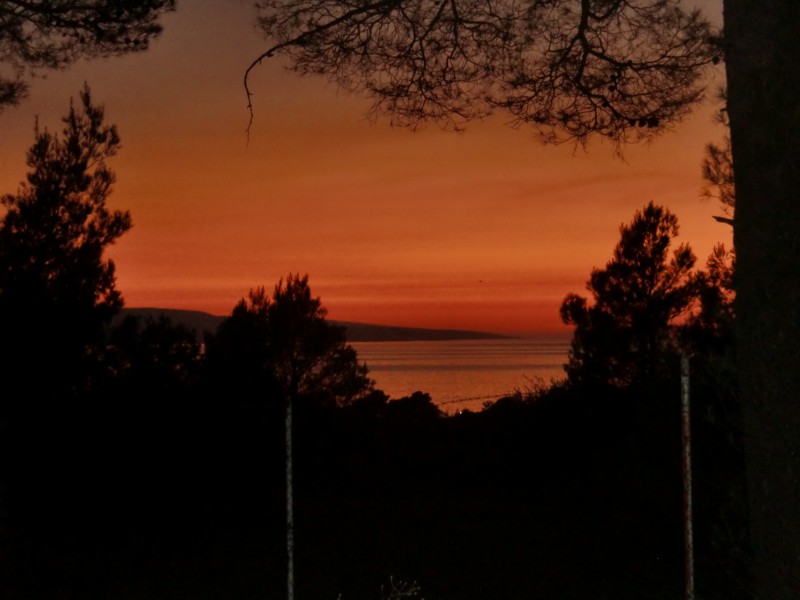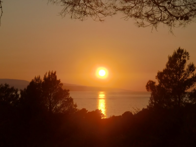 Ute ist um 08.30 Uhr unter Protest zum Pekara gegangen, da ich ja zum sterben krank war(Husten).jetzt im Augenblick ist kein Sturm mehr .d.h. kurz frühstücken Ute hat sich noch 2h gesonnt , ich liege noch, habe Tablette gefuttert., kurz TV an mir geht es wirklich nicht gut. Lieg den ganzen Tag lang, na prima. um 16,30 Uhr sind wir noch mal kurz an den Strand es sind schon wieder 30°C Wahnsinn. wir haben noch geangelt ,aber die Fische haben gestreikt, dann noch den Sonnenuntergang fotografiert. um 19.30 Uhr macht Ute extra für mich ??? Juhu, Spaginskis mit kroatischer Wurst, so ähnlich wie unsere Poltawer (Hamburger) früher große Fettstücke aber lecker mit Kümmel und Knoblauch. natürlich viel Käse drüber.