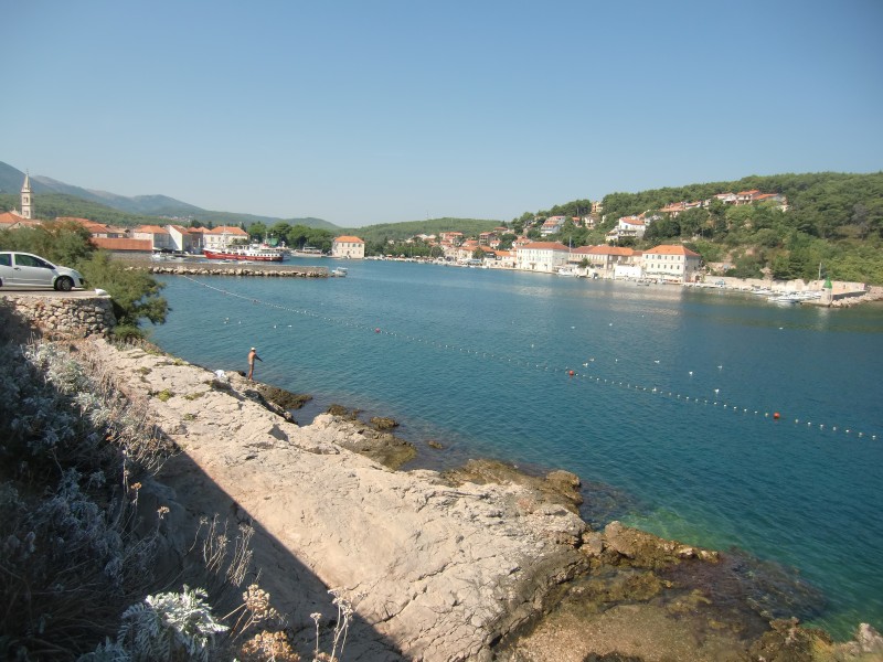 (große rote Brücke ,von der man auch springen kann )leider war es sehr windig und die Sonne schien auch gerade nicht, also sind wir zum 1,mal weiter gefahren. um 13,00 Uhr kamen wir auf dem Camp in Starigrad an „SENSKI PORAT“, total windig, ich konnte noch nicht einmal die Stühle raus stellen BORA BORA. Ein Glück ich bin noch über die Brücke gekommen um 14.30 Uhr sagte der Mann vom platz, sie sei gesperrt.. das Camp ist für Max 3 Womos ein Älterer Mann ist der Besitzer ,er hat noch 20mm weiter eine Gaststätte vor dem Camp ist ein Betonierter fußweg den man aber nicht sieht dank der Hecke, sehr gemütlich hier, vor 2 Jahren waren wir schon einmal hier, direkt vor der Tür ist eine kleine Landzunge ca. 20 m für uns zum baden und sonnen Dann machte Ute Röstis mit Ei ich habe aber leider noch kein Hunger. .es stürmt immer schlimmer ,um 18.00 Uhr laufen wir in den Ort und holen uns lecker Wurst ,Ute etwas Saft. Eigentlich wollten wir essen gehen, aber beide Gaststätten waren zu.