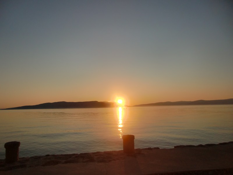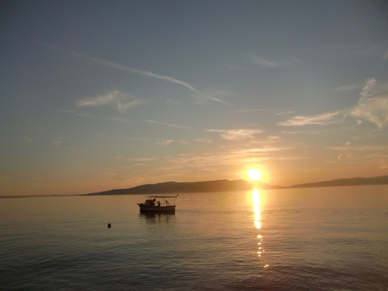 Ute ist um 08.30 Uhr unter Protest zum Pekara gegangen, da ich ja zum sterben krank war(Husten).jetzt im Augenblick ist kein Sturm mehr .d.h. kurz frühstücken Ute hat sich noch 2h gesonnt , ich liege noch, habe Tablette gefuttert., kurz TV an mir geht es wirklich nicht gut. Lieg den ganzen Tag lang, na prima. um 16,30 Uhr sind wir noch mal kurz an den Strand es sind schon wieder 30°C Wahnsinn. wir haben noch geangelt ,aber die Fische haben gestreikt, dann noch den Sonnenuntergang fotografiert. um 19.30 Uhr macht Ute extra für mich ??? Juhu, Spaginskis mit kroatischer Wurst, so ähnlich wie unsere Poltawer (Hamburger) früher große F