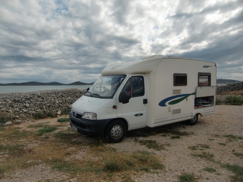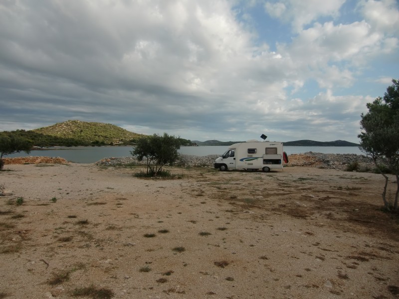 Gegen 14,00 Uhr fahren wir in Vodice ein dort ist ein Lidl, natürlich müssen wir dort auch rein, denn hier ist immer XXL gegenüber Lidl in Deutschland. Gegenüber ist ein Kroatischer Markt, dort auch rein Preise vergleichen. ist total unterschiedlich mal da, mal da teurer. jetzt folgt eine allererste Zwangspause da es so geschüttet hat ,konnten wir die leckeren kroatischen Wiener in unseren Womi aufessen. um 15.30 Uhr sind wir weiter kurz hinter Vodice auf der linken Seite ein Schild Camp Peter, dann aber sofort nach ca.30m nach rechts abbiegen (parallel zur Straße) ein Camp ca. 10-15 Mobil platz ,allerdings ohne Strom für 80 Kuna.