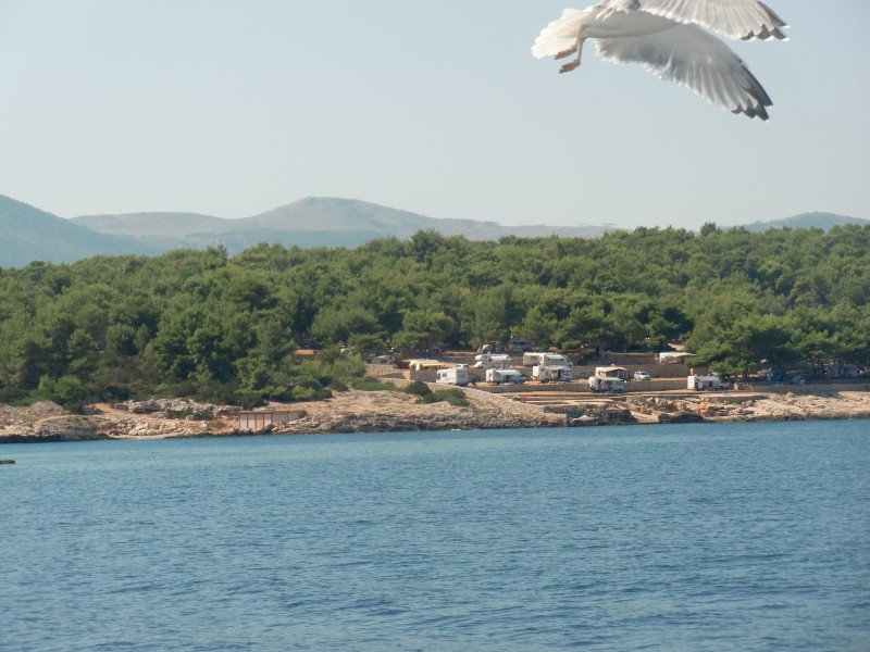 Es ist auch noch teuer, kein vergleich zu Sv.Juraj es ist verdammt viel Platz hier warum nur ???? in ca. 7 Stunden werden wir es wissen, wir entscheiden uns in der 1.Reihe mit Blick zwischen den Bäumen auf die Adria, 1 Nacht bleiben wir, bis es Ute besser geht.