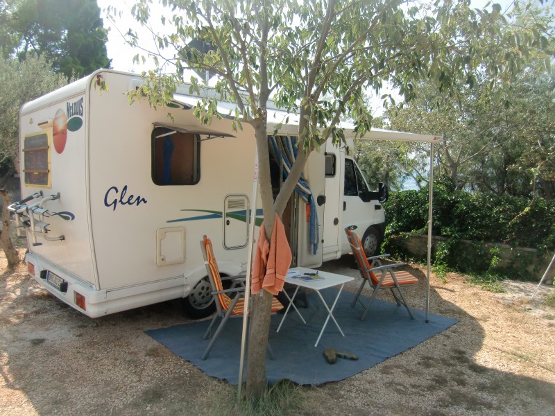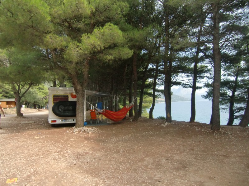 also nichts wie weiter. Nächstes Camp wieder nicht am Wasser 5 Womo´s stehen eng an eng. ja sag ich, es geht noch direkt bis Gradac, aber Ute geht es nicht gut, deshalb fahre ich bei Ploce auf das Camp Pole. Viel zu groß, hier waren wir schon einmal vor 2 Jahren, aber Ute braucht Schatten und Ruhe.