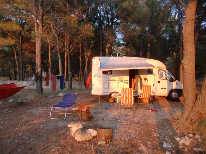 Das war falsch. Der Platz kostet 22,50 € also 162 Kuna, ja um es schnell zu erklären, direkt vor unserem Womi ist ein kleiner Trampelpfad