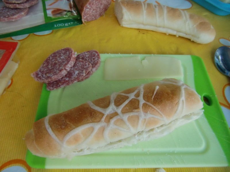 Um 07.30 Uhr werde ich mit Hals aua wach, gut dann geht Ute mal zum Pekara und bringt ein Hörnchen und eine Käsestange.