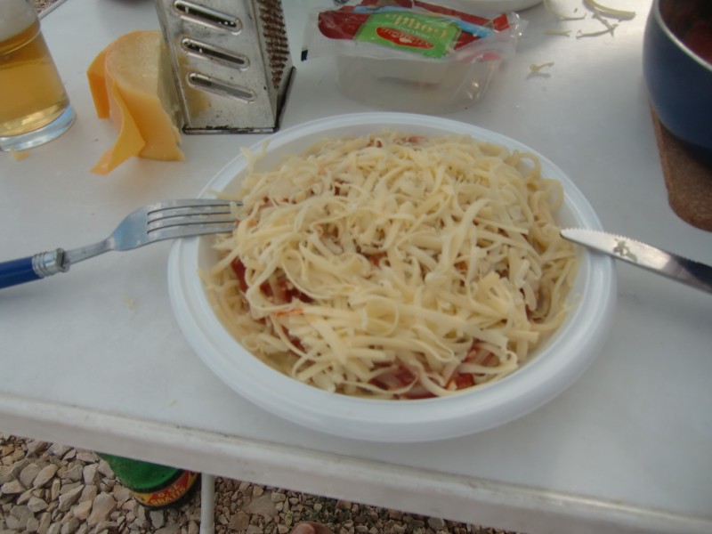 Hey Ihr passt ja auf .Richtig eine Riesen Ladung Spaginskis mit gewürfelter Harte Wurst dann muss man noch die Reibe betätigen , um die Käseschicht zu füllen. dazu etwas kroatischen Wein. alles lecker. Jetzt Reciver an, aber nur Radio „DAS DING“ den Sender höre ich zu hause immer.