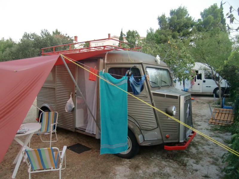 ettstücke aber lecker mit Kümmel und Knoblauch. natürlich viel Käse drüber. Es ist schön hier, nicht so viele .nur ein Polnisches Pärchen die sind in einem kleinen Wohnwagen, den er auch vermietet und ein Paar aus Arnstadt mit einem Super Oldi. Ich darf es fotografieren. mit liebe gemacht sie kommen hier schon 15 Jahre her. Übrigens wir müssen wieder mal über das liebe Geld reden, der Platz kostet 57 Kuna, das sind ca. 8 € ohne Strom der billigste Platz in Kroatia.