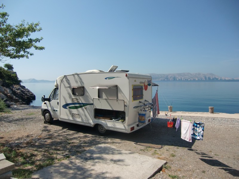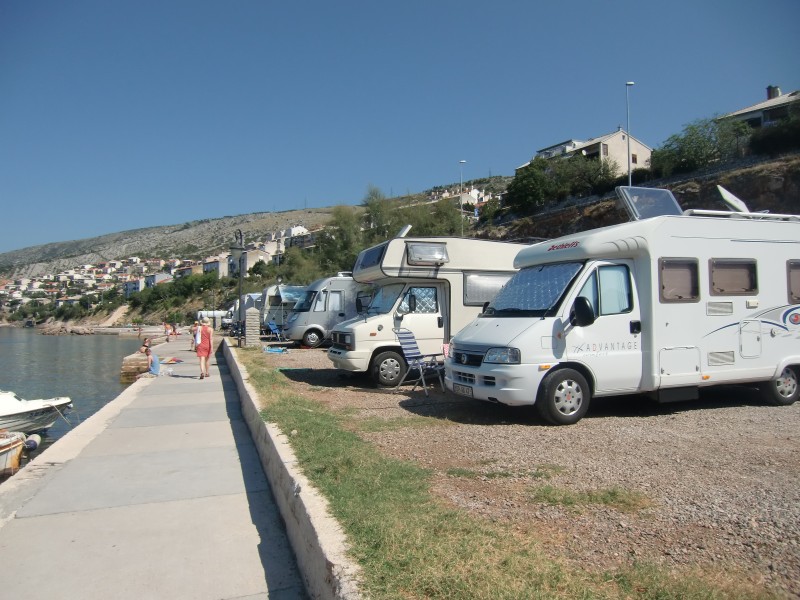 Um 07.30 Uhr sind wir wach und was machen da 2 Deutsche an der Adria, richtig als Nackidei sofort ins Wasser springen. zum Glück sind hier keine Seeigel. die Adria ist spiegelglatt und die Inseln sehen jetzt schneeweiß aus. übrigens schauen wir auf KRK, Basca. dann im Hintergrund die Insel Raab davor links Goli Otok, dort waren wir schon 2x mit dem Boot“ Pasadur“ .Josef Tito hatte dort eine Männer Gefängnisinsel eingerichtet rechts davon die Frauen Gefängnisinsel, die durfte man aber noch nicht betreten. Um 08.00 Uhr frühstücken wir ganz in ruhe, das einzige Mankel, man hört die Straße hinter uns , aber sonst super. Zum abwaschen geht es auf den hinteren Platz unter der Straße durch. hier hinten ist es sehr ruhig und Platz für ca. 30 Womo`s Um 10,00 Uhr ist es soweit, ich habe es nicht anders erwartet ,Ute möchte in ihren Lieblingsort Senj fahren ,nun o.k. ich mache unser Womi startklar. und ab geht es ca. 18 Km zurück.