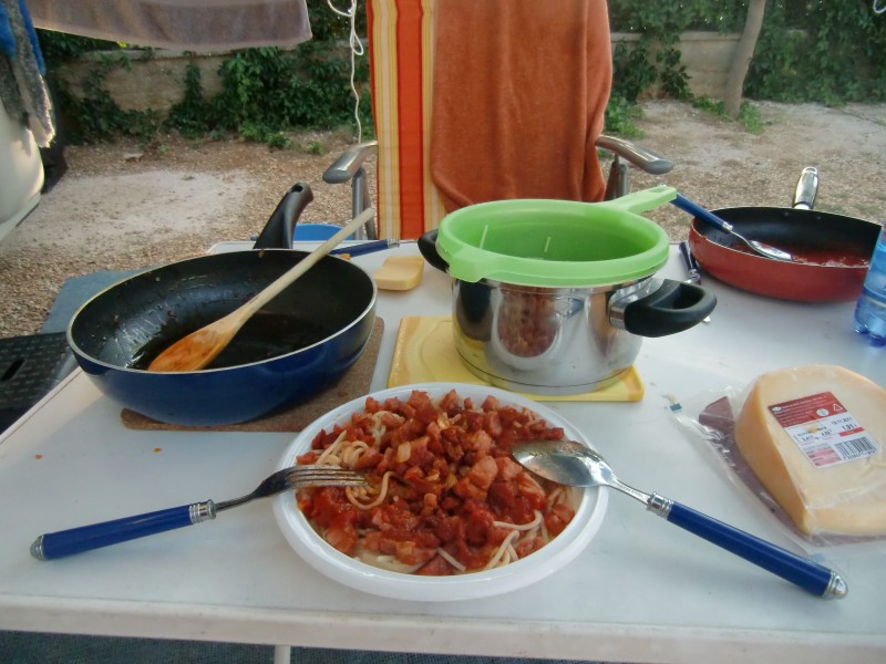 Jetzt fängt der Urlaub an Markise raus natürlich ein Karlovacko auf und einen schönen Wein die Sonne geht langsam unter .na klar Ute macht Spaginskis direkt an der Adria ,um 20.00 Uhr essen wir mit direkten Meerblick. Warum müssen wir denn wieder nach Deutschland, hier können wir doch alt werden.
