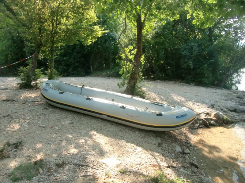 Der Fluss sieht doch ganz gemütlich aus , das wird sich aber noch schnell ändern. lag ein schmales mit Flicken übersätes Schlauchboot.