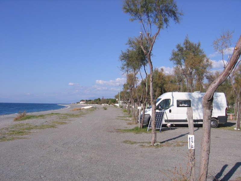 wir waren Mitte November auf der Sosta "Lido Tropical". Der Platz ist mit einem Entsorgungspunkt für WoMos, mehreren Duschen und Toiletten sowie zahlreichen Waschplätzen und Entsorgungsstellen für Toiletten ausgestattet. Jeder Platz hat eigenen Wasser- und Stromanschluss. Alles funktionierte super, auch die beiden Waschmaschinen. Der sehr freundliche Besitzer Renato, Tel. (+39) 333 8765141, hält alles auch in der Nachsaisaon sauber und gut in Schuss. Die Sosta ist ganzjährig geöffnet und hat eine eigene Internetseite. Er kostete jetzt in der Nachsaison unschlagbare 8 Euro pro Tag. Der Platz liegt direkt am Strand (siehe Foto) - nicht mit dem Womo ins Wasser fallen ! Störend kann die sehr nahe Bahnlinie und die angrenzende örtliche Straße - vor allem werktags - empfunden werden. Am Wochenende ist deutlich weniger Verkehr. Im nahen Städtchen Diamante gibt es alles für den täglichen Bedarf und auch darüber hinaus. Uns hat es dort so gut gefallen, dass wir wieder kommen wollen. Viele von Annette und Thomas ![]() |