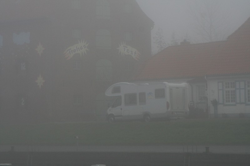 Nach dem Einkauf ging es weiter nach Tönning. Nur wenige km von St. Peter Ording entfernt war der Hafen unser Ziel zum Parken. Tönning war abgesehen vom schlechten Wetter und dem anhaltenden Nebel kein schöner Ort in unseren Augen. Unseren Hunger nach einem Fischbrötchen konnten wir hier auch nicht stillen. Nichts geöffnet bzw. gar nicht vorhanden. Somit sollte es nach einem kurzen Rundgang weiter gehen.