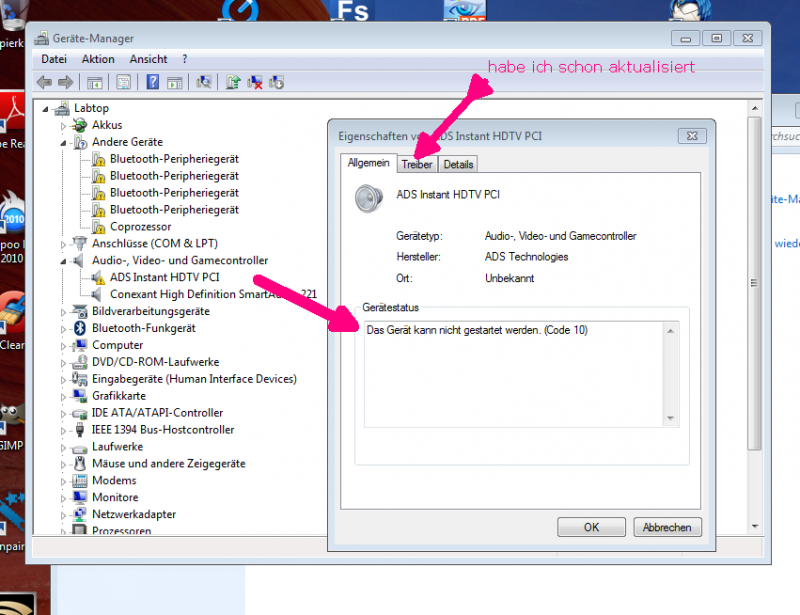 also alle gelben Ausrufezeichen "Geräte deaktiviert" runter- und wieder raufgefahren, auch nix... :cry: :cry: :cry: