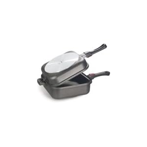 Aber wie oft braucht man das? wir nutzen zwei 24er Gusspfannen, viereckig, von Woll-Pfannen mit abnehmbaren Griff. Diese passen sehr gut nebeneinander auf die Herde. Nehmen weniger Platz weg wie runde Pfannen.