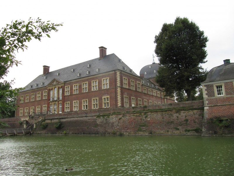 Donnerstag 15.09.2011 - von Rees nach Xanten Zuerst ein ausgiebiger Spaziergang mit Max, dann Ver- und Entsorgung am Stellplatz. Erst dann kann es losgehen. Zuerst geht es von Rees nach Emmerich. Als wir in der Nähe der Rheinbrücke aussteigen, vermissen wir unsere Fotokamera. Trotz intensiver Suche innerhalb des Wohnmobils ist die Kamera nicht zu finden. Nach Aussteigen und Besichtigung der Rheinbrücke ist uns nun nicht mehr zumute. Wir entschließen uns, noch einmal nach Rees zurückzufahren und dort am Stellplatz noch einmal zu suchen. Selbstverständlich erfolglos. Recht mutlos suchen wir noch einmal im Wohnmobil und tatsächlich an einer Stelle, an der wir nicht gesucht haben – ganz verborgen hinter dem Körbchen von Max – lag das Etui incl. Kamera. Die Kamera ist auf einer Sitzbank im WoMo liegen geblieben und durch die Bewegung während der Fahrt auf den Boden gefallen und schließlich hinter das Körbchen gerutscht. Na egal – Hauptsache die Kamera ist wieder da. Von der Rheinbrücke in Emmerich gibt es allerdings leider keine Fotos. Es ist nun schon Mittag, als wir erneut von Rees starten. Jetzt geht es zu dem sehr Wasserschloss Moyland. Das Schloss ist aus Backstein errichtet, wirkt sehr stattlich und ist sehr schön anzusehen. Auch der Schlossgarten ist sehr gepflegt. Der Besuch hat sich gelohnt.