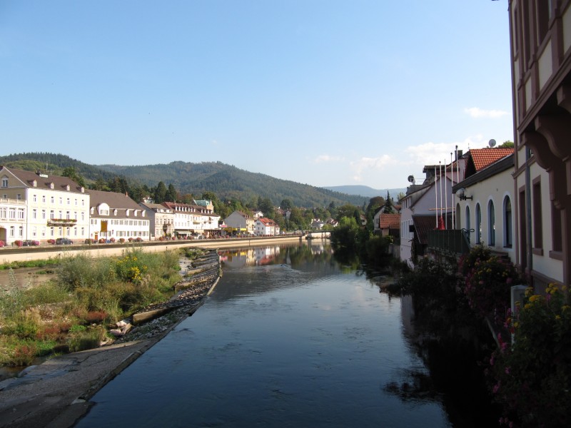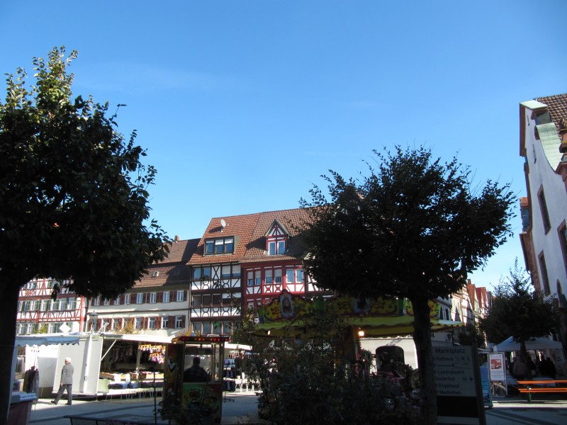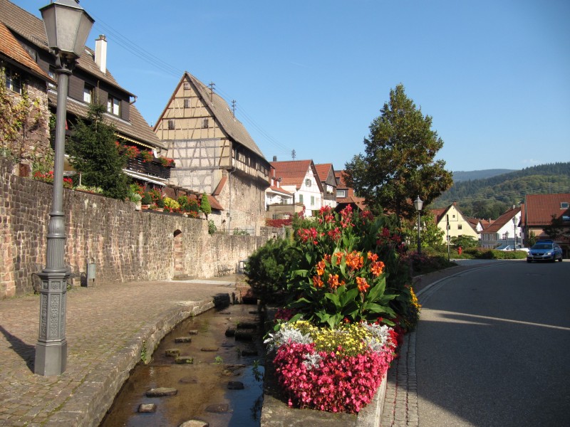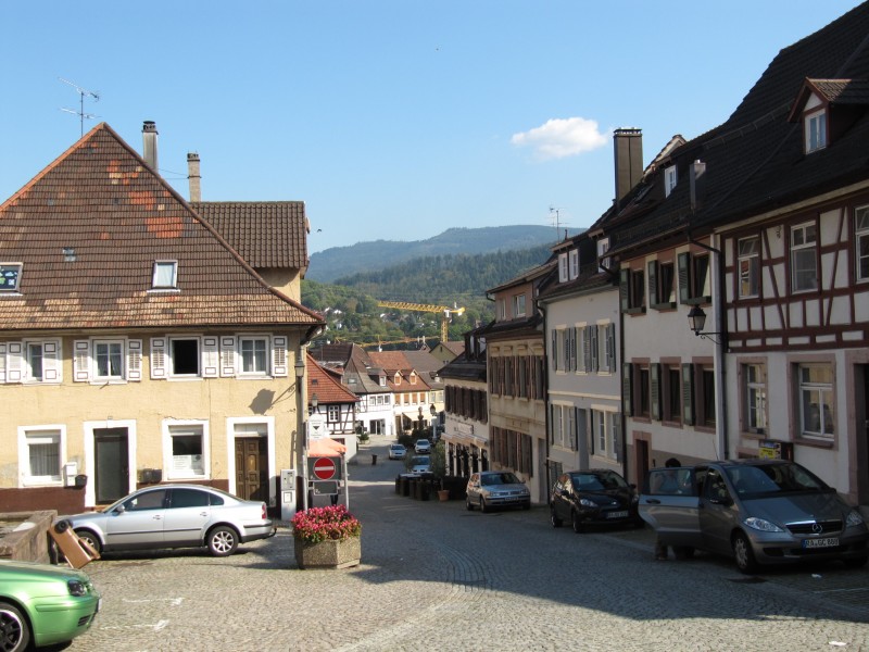 Montag 26.09.2011 - von Bad Dürkheim nach Gernsbach (Schwarzwald) Heute machen wir einen relativ großen Sprung weiter in südliche Richtung. Zunächst geht es über Neustadt/Weinstrasse, Edenkoben bis Landau immer dem Wein entlang. In Landau werden wir für eine kurze Zeit unserem Grundsatz „nur Land- oder Bundesstraße“ untreu und fahren auf die Autobahn A 65. Schnell erreichen wir Karlsruhe und fahren auf der B 3 in Richtung Rastatt. Über Gaggenau gelangen wir dann nach Gernsbach (im Murgtal) und sind nun im Schwarzwald. Der Stellplatz ist nicht schlecht, aber etwas laut. Sonst wären wir gerne noch eine weitere Nacht geblieben, denn der Besuch von Gernsbach lohnt. Gernsbach verfügt über eine sehr schöne Altstadt, durch die wir am Nachmittag einen Rundgang machen.