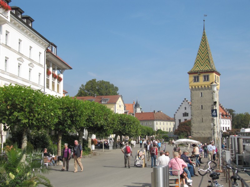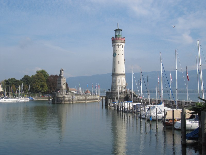 Mittwoch 05.10.2011 – von Meersburg nach Scheidegg Für heute haben wir vor, zunächst nach Lindau zu fahren um uns die dortige auf einer Insel gelegenen Altstadt anzusehen. Nach dem Spaziergang mit Max geht es los. Über Friedrichshafen und Kressbronn gelangen wir nach Lindau. Es herrscht sehr viel Verkehr und zudem ist auch noch die B33 gesperrt (Umleitung durch die kleinen Bodensee-Orte), so das wir „stau-bedingt“ erst gegen Mittag in Lindau sind. Wir parken auf einem für Wohnmobile vorgesehenen Parkplatz (auf dem man auch Übernachten könnte) und nehmen den halbstündlich verkehrenden Linienbus, der – als wir die Haltestelle erreichen – gerade abgefahren ist. Also warten! Schließlich erreichen wir den in der Nähe des Bahnhofs gelegenen Hafen und beginnen von hier den Rundgang durch die sehenswerte Altstadt.