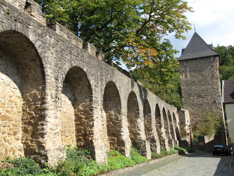 Dann ist Mittagsruhe. Die Sonne, die während unserer Wanderung herausgekommen ist, hat sich leider verzogen. Zum draußen sitzen ist es daher zu kühl. Am späten Nachmittag machen wir uns dann noch einmal in das Zentrum von Bad Münstereifel. Wir folgen ein Stück der Stadtmauern und entdecken einige Teile der Altstadt, die wir gestern noch nicht gesehen haben.