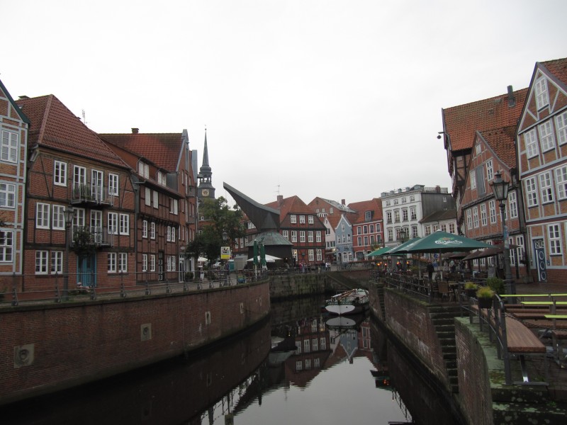 Freitag 09.09.2011 - von Hamburg nach Stade Gegen 13.00 Uhr fahren wir von zu Hause ab. Zunächst geht es quer durch die Stadt zur A 7 (Auffahrt HH-Othmarschen), auf der wir den Elbtunnel durchfahren. Auf der anderen Seite der Elbe fahren wir sofort wieder von der A 7 ab (Abfahrt HH-Waltershof). Von dort ging es über HH-Finkenwerder, an dem Airbus-Gelände vorbei und durch das Alte Land (Obstanbaugebiet) nach Stade. Gegen 14.30 Uhr kommen wir auf dem dortigen Stellplatz an. Dem dann fälligen Spaziergang mit Dackel Max schliesst sich ein Rundgang durch die sehenswerte historische Altstadt an. Es ist fast schon dunkel, als wir zum Wohnmobil zurückkommen.