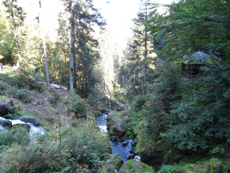 Mittwoch 28.09.2011 – in Schonach Den Tag lassen wir zu Gunsten von Max mit einer kleinen Wanderung, bergauf durch den Wald bis zum Gasthaus Wilhelmshöhe und zurück, beginnen. Anschließend laufen wir von dem Stellplatz in den Ort, denn von dort fährt der Bus nach Triberg ab. Eigentliches Ziel sind aber die Triberger Wasserfälle (der höchste Wasserfall Deutschlands), die wir auch als erstes aufsuchen. Auch hier müssen wir wieder steigen, aber da wir die schönen Wasserfälle sehen, der Weg schattig ist, geht es sich recht gut.