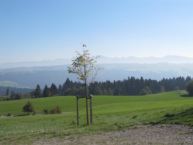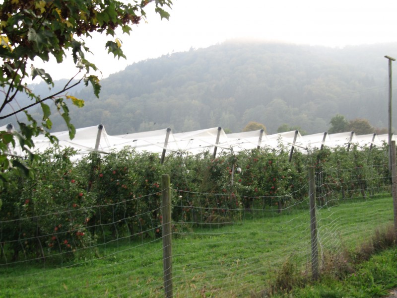 Freitag 30.09.2011 – von Hüfingen nach Wahlwies (Bodensee) Wie schon am Vortag, machen wir uns bei Sonnenschein auf den Weg. Es geht über Engen, Singen und Radolfzell in den kleinen Ort Wahlwies. Auf unserer ganzen bisherigen Tour haben wir ausschließlich auf Stellplätzen gestanden, aber in Wahlwies steuern wir den örtlichen Campingplatz an. Es ist nämlich Zeit einmal Wäsche zu machen (mit Waschmaschine und Trockner). Seit Engen haben wir wieder Hochnebel, der leider auch bei Ankunft in Wahlwies nicht verschwunden ist. Aber es ist schon etwas heller und gegen 14.00 Uhr ist der Nebel verschwunden und es ist sonnig und warm. Max macht mit mir noch eine kleine Wanderung entlang der Apfelplantagen. Zwischenzeitlich ist die Wäsche fast fertig und so können wir auch etwas die Sonne genießen.