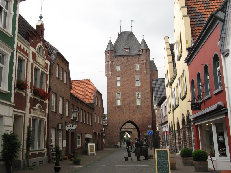 Dienstag 13.09.2011 - von Borken nach Rees Bevor es weiter geht, machen wir wieder eine Runde mit Max. In der Nähe des Stellplatzes ist ein kleiner Wanderweg, dem wir ein Stück folgen. Am Wohnmobil zurück machen wir uns startklar und fahren ab. Unser erstes Ziel ist die Stadt Bocholt. Wir bummeln ein wenig durch die Innenstadt, in der wir aber – ausgenommen das historische Rathaus – keine Sehenswürdigkeit entdecken. Es fehlen auch diesbezügliche Hinweisschilder. So ist unser Aufenthalt in Bocholt nicht allzu lang.