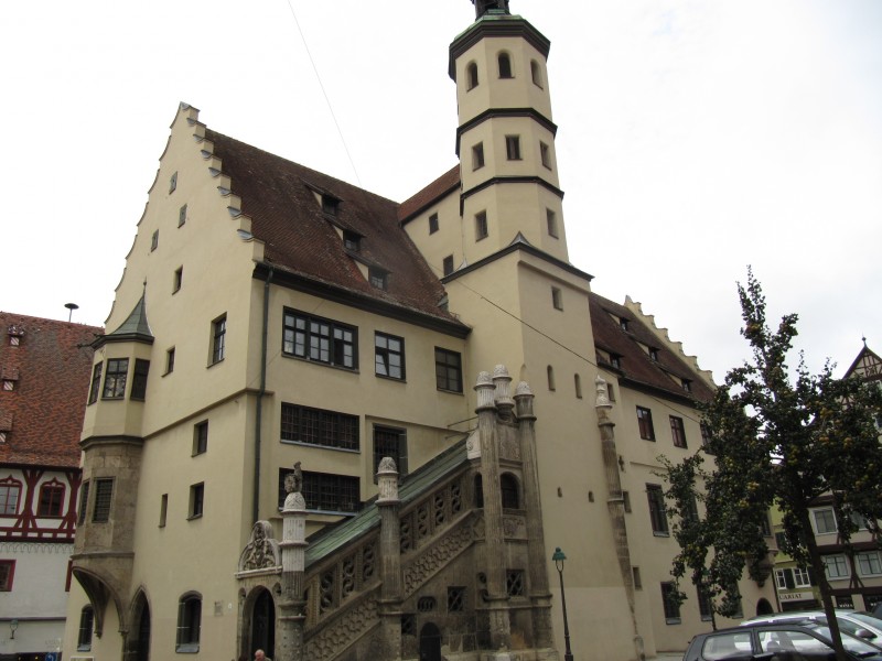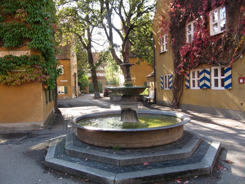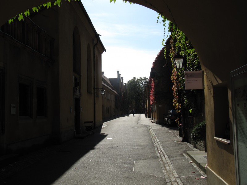 Dienstag 11.10.2011 – von Augsburg nach Nördlingen Als wir die Rollos früh morgens herunterlassen, scheint tatsächlich die Sonne. Auch ist es nicht mehr so kalt.So lassen wir den Tag mit einem längeren Spaziergang mit Max beginnen. Anschließend machen wir uns auf den Weg in die Altstadt von Augsburg. Wir betrachten das Rathaus, den Dom und gehen dann zur Fuggerei. Wir besichtigen die erste Sozialsiedlung der Welt.
