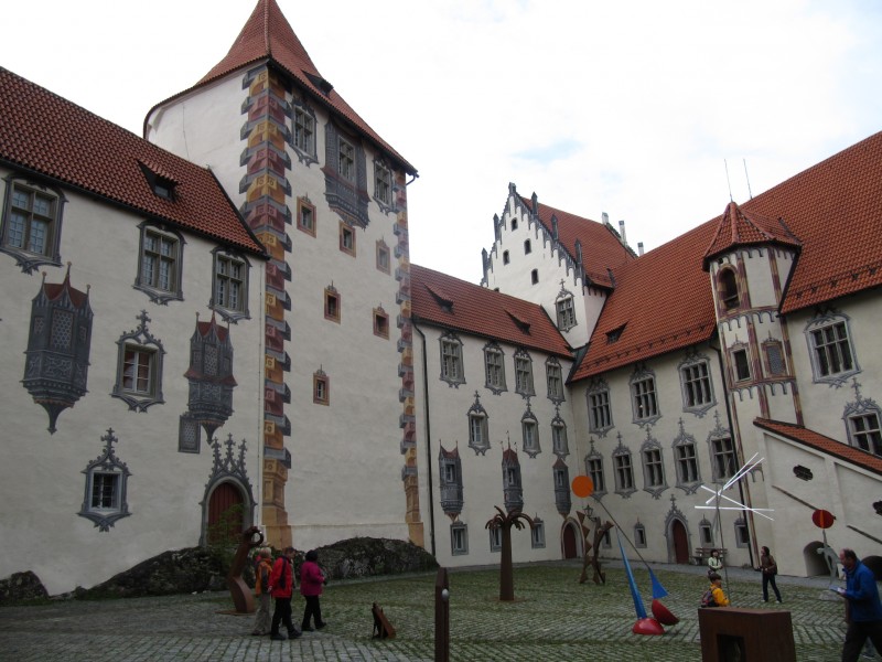Pünktlich um 15.00 Uhr wurden wir ins Schloss hineingelassen und wenig später begann die Führung. Die Räume, durch die wir geführt wurden, waren sehr prunkvoll, enthielten viele Kunstwerke. Die Führung dauert aber nur 35 Minuten. Wir hätten aber gern etwas mehr Zeit gehabt, uns die einzelnen Dinge anzusehen. Fotografieren durften wir im Schloss nicht und Bilder kann ich aus Gründen des Urheberrechts nicht einstellen. Nach Ende der Besichtigung sind wir zu Fuß zur Bushaltestelle zurück gelaufen. Unsere müden Beine haben wir jetzt schon gemerkt, aber vom Bahnhof Füssen ging es noch einmal 1,5 Kilometer zu Fuß zum Stellplatz. Ich bin dann noch zu einem 1/2-stündigen Spaziergang mit Max aufgebrochen. Wieder am Wohnmobil zurück, hatte ich für den Tag dann aber auch vom Laufen genug.