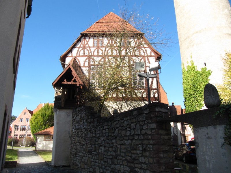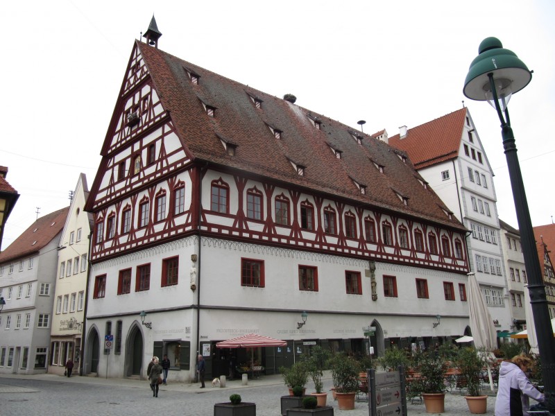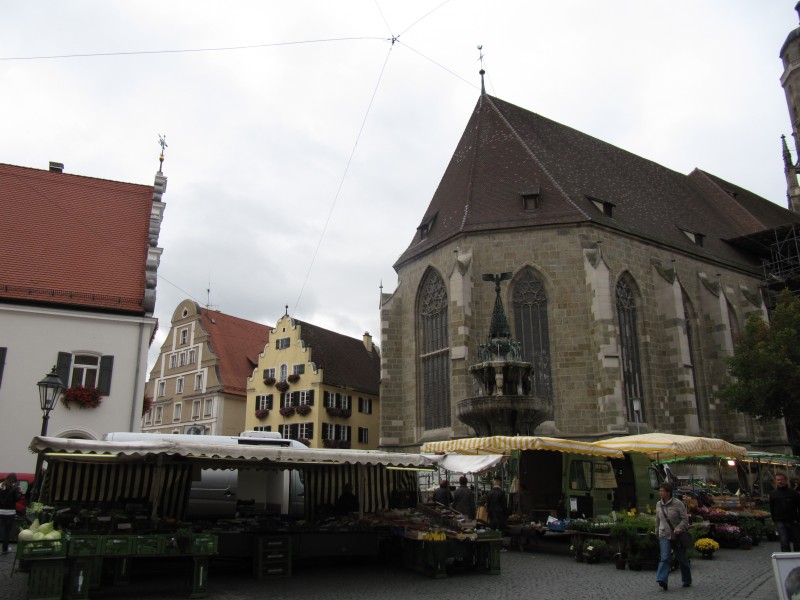 Mittwoch 12.10.2011 – in Nördlingen Unserer Max ist wie fast immer als erster dran. Wir gehen auch heute nicht davon ab. Als Spaziergang machen wir eine Runde um die Stadt, und zwar immer außerhalb entlang der Stadtmauer. Ein recht schöner Weg für Max. Dann geht es aber nach Nördlingen hinein. Vom Stellplatz ist es nicht weit in die Altstadt. Wir gehen dem „historischen Rundgang“, einem so ausgeschilderten Weg durch die Stadt, nach. So entgeht uns keine Sehenswürdigkeit. In Nördlingen gibt sehr viele historische Häuser zu sehen. Schade, das eine und andere Gebäude im Stadtkern können wir nicht fotografieren oder filmen. Es ist Markt und die Verkaufsstände verdecken einige schöne Motive.