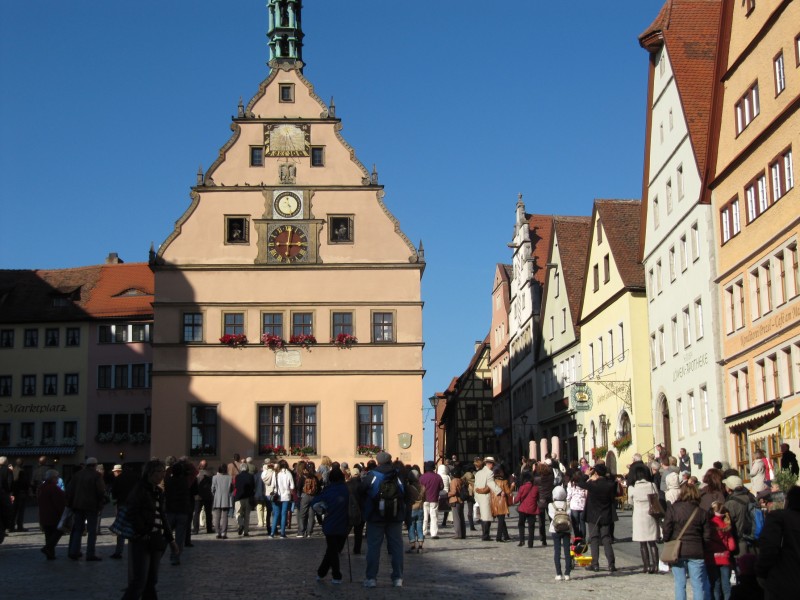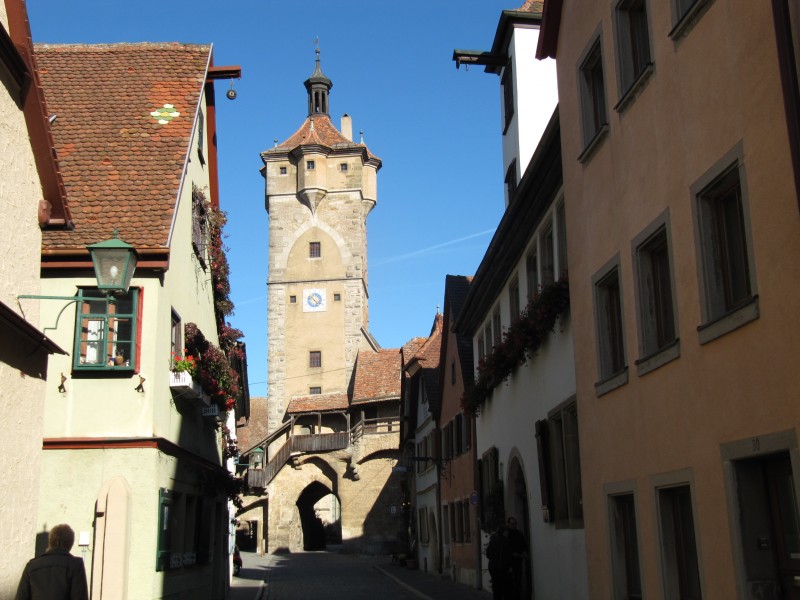 Freitag 14.10.2011 – in Rothenburg o.T. Der heutige Tag beginnt wieder mit einer kleineren Wanderung ins Taubertal hinab, dann aber oberhalb der Tauber dem Tal bis in den Nachbarort. Dann den Weg wieder zurück. Es ist ein sehr schöner Weg. Am Wohnmobil zurück, starten wir sofort zur Fortsetzung unseres Stadtrundgangs. Wir hatten auch Rothenburg ob der Tauber schon einmal besucht, aber wir finden diese Stadt so hübsch, dass wir noch einmal alles sehen wollen. Rothenburg begeistert uns immer wieder.