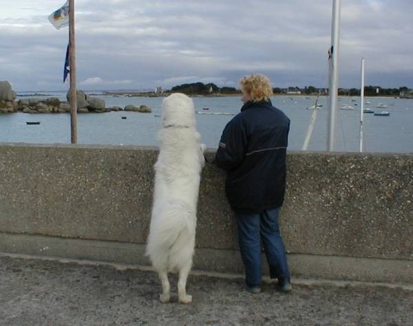 Moin, ALLE die mit ihm im Haus wohnen, ist er ergeben ! und wenn regelmäßig Besuch kommt, regelmäßig! mit denen kann der Hund auch Gassi gehen :D oder z. b. unseren 90 jährigen Nachbarn, den er täglich gesehen hat, der konnte ihn auch nach fünf Monaten anfassen und die waren auch ein Herz und eine Seele :D ...wir haben ein 3000 qm Grundstück, da hatte er auch allerhand aufzupassen :D wie ich schon schrieb, der nächste ist wieder ein Owczarek Podhalanski. Anbei ein Bild von unserer jetztigen Leonbergerin, heute Morgen aus dem Womo gemacht :D ![]() ...noch zwei Bilder vom unserem leider verstorbenen Owczarek Podhalanski...