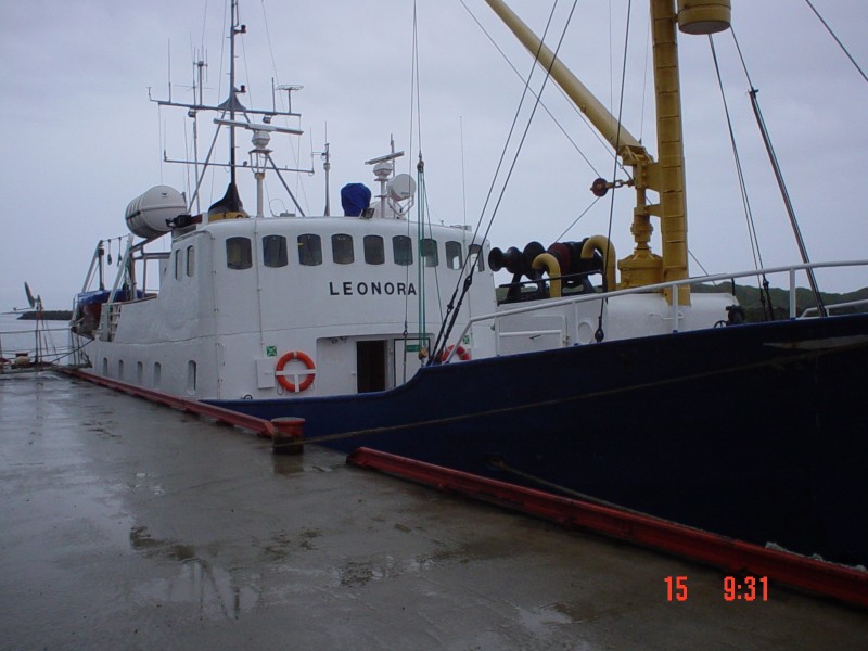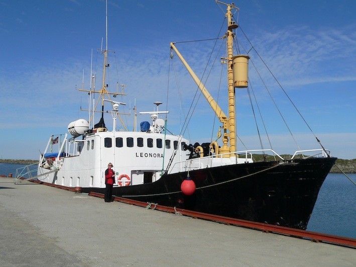 MS Leonora - unser damaliges walewatshing-schiff oben rechts sieht man ein stück vom ausguck-korb für den beobachter