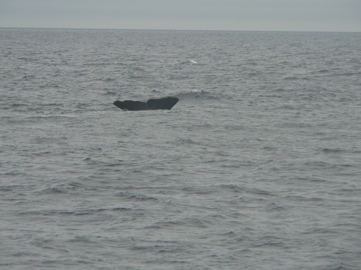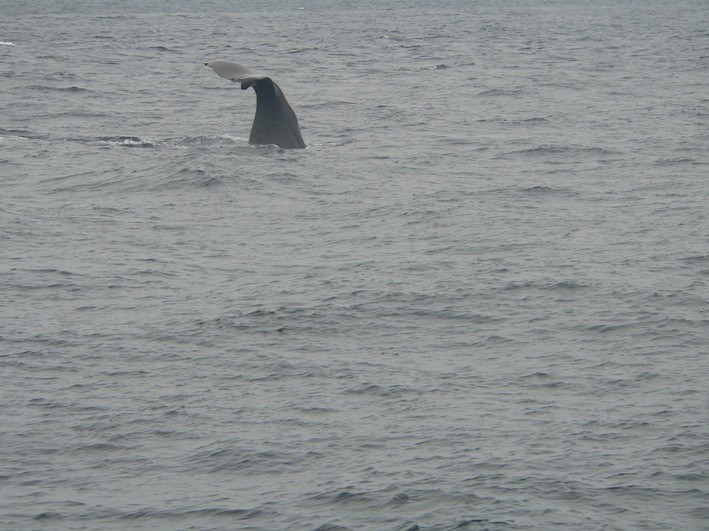 der erste Pottwal ist aufgetaucht, atmet 8- 10 mal und