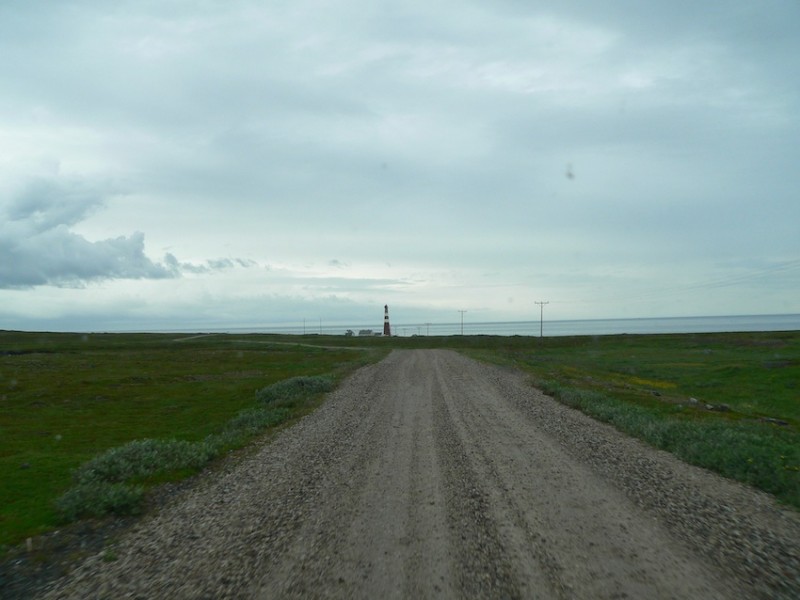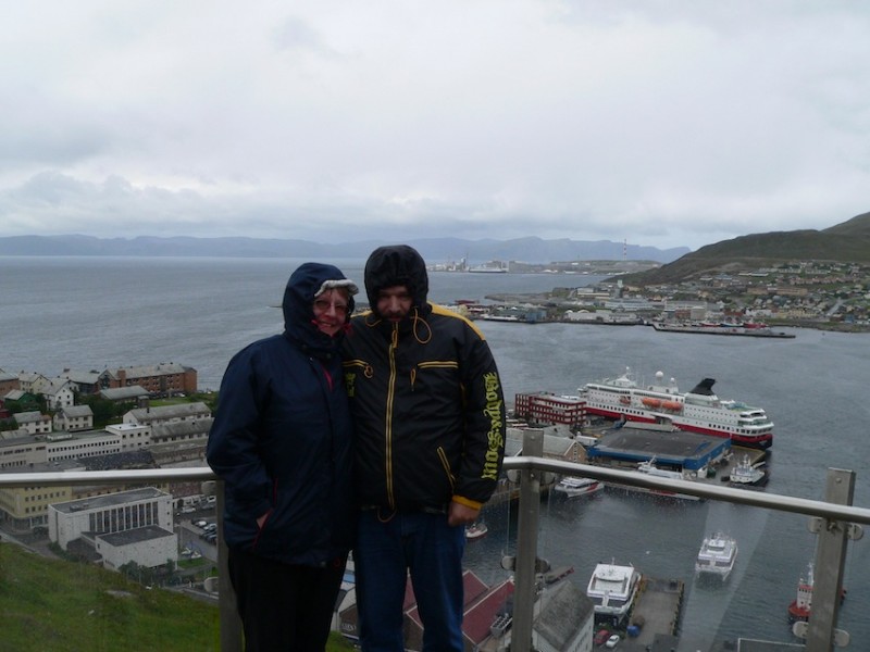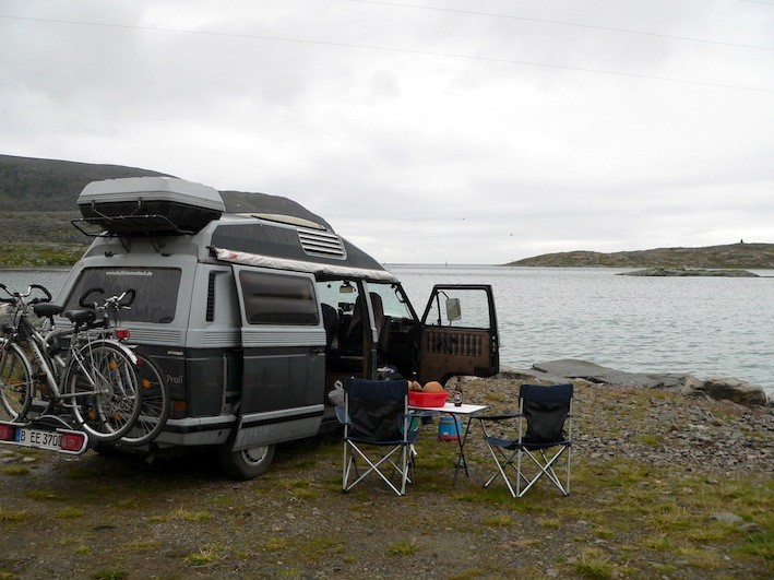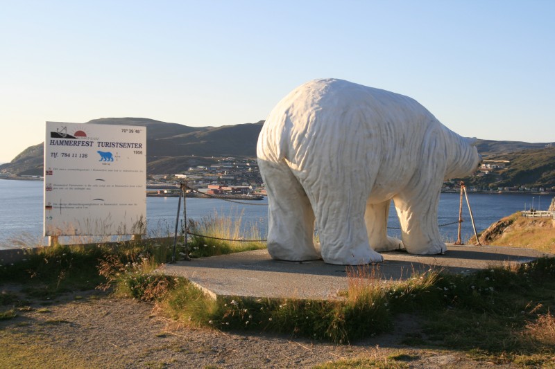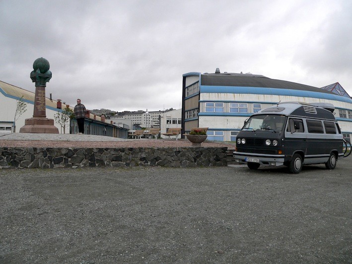 Und drittens, in Hammerfest waren wir letztes Jahr, war aber Wochenende und alles zu. Wir haben eignetlich nur den Bären und den Struvebogen besichtigt und natürlich Vorräte aufgefüllt. Nach Norden raus aus Hammerfest hatten wir ne schöne Stelle mit Mitternachtssonne.
