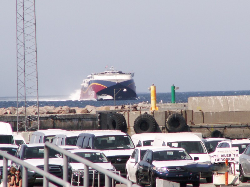 Der Katamaran " Fjord-Cat " kurz vor dem Hafen in Hanstholm