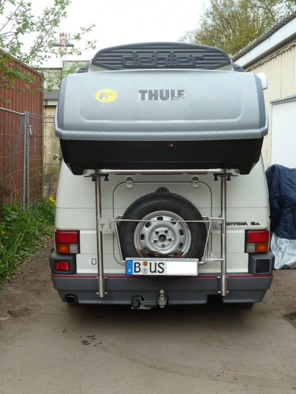 Solaranlage funktioniert einwandfrei. Endlich, einen nach unseren Wünschen gebauter Heckträger mit schwenkbarem Reserveradträger.