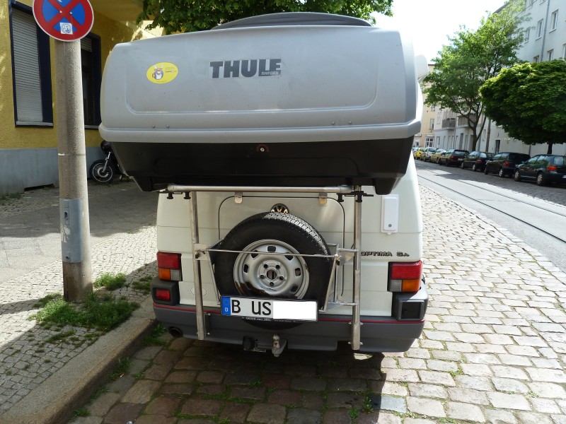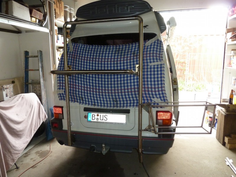 Halteverbot.....wo :D Ja, fast 3 Jahre versucht, einen gebrauchten Heckträger zu bekommen, nun endlich nach meinen Wünschen diesen anfertigen lassen.... Mal schaun, wie sich das alles auf unserer Tour bewährt.... Hallo Svenne!