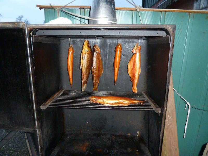 Lachsforelle, Goldforellen und ein Schlei beim räuchern...