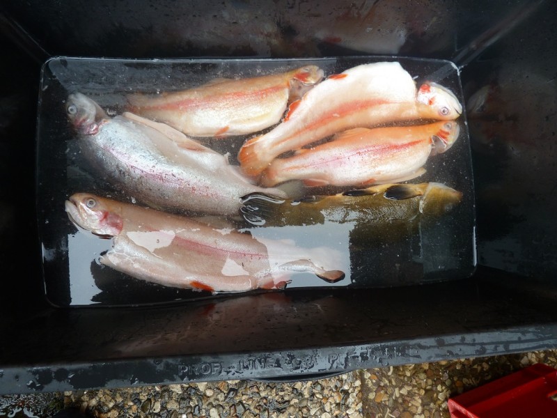 Lachsforelle, Goldforellen und ein Schlei im Salzbad...